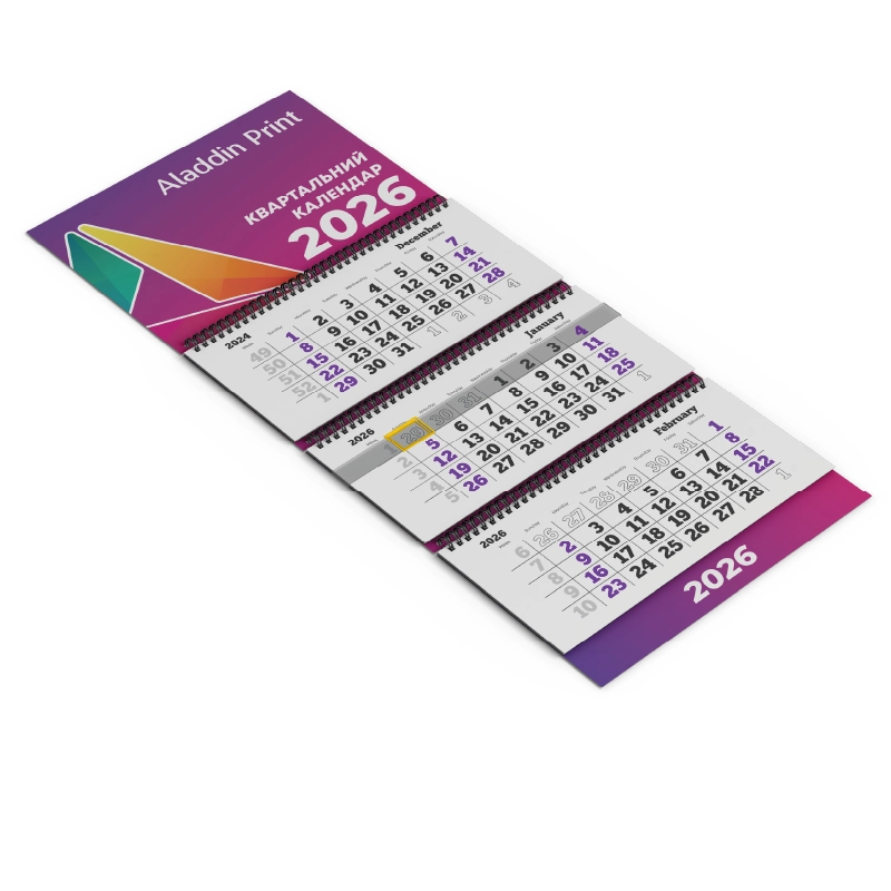 🔹 Замовте квартальний календар від 1 штуки з персоналізацією, якісним друком, брендуванням та індивідуальним дизайном під ваші потреби.